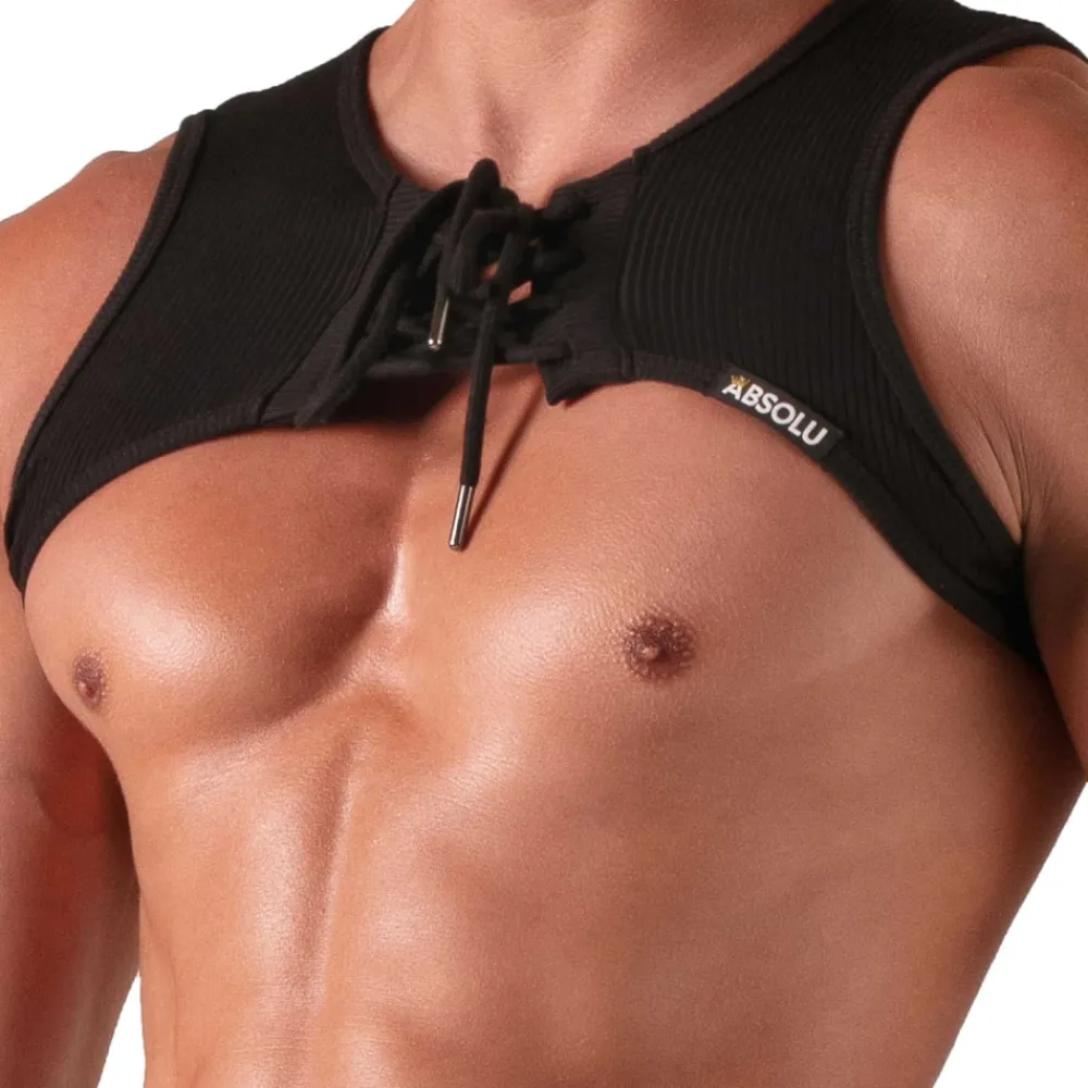 Harnais sexy en coton côtelé très doux et confortable. Laçage façon corset à l’avant. Fabrication française.