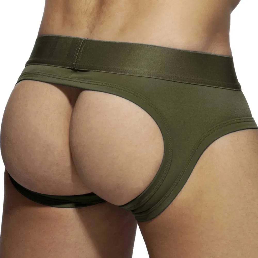 Slip en microfibre ultra douce et agréable à porter de couleur fétichiste. L’arrière a été découpé, à la manière d’un jockstrap, afin d’offrir une totale liberté de mouvement. Coupe taille basse très ajustée, idéale pour mettre en valeur vos formes.Ceinture élastique avec logo AD en silicone.