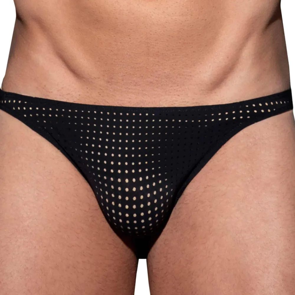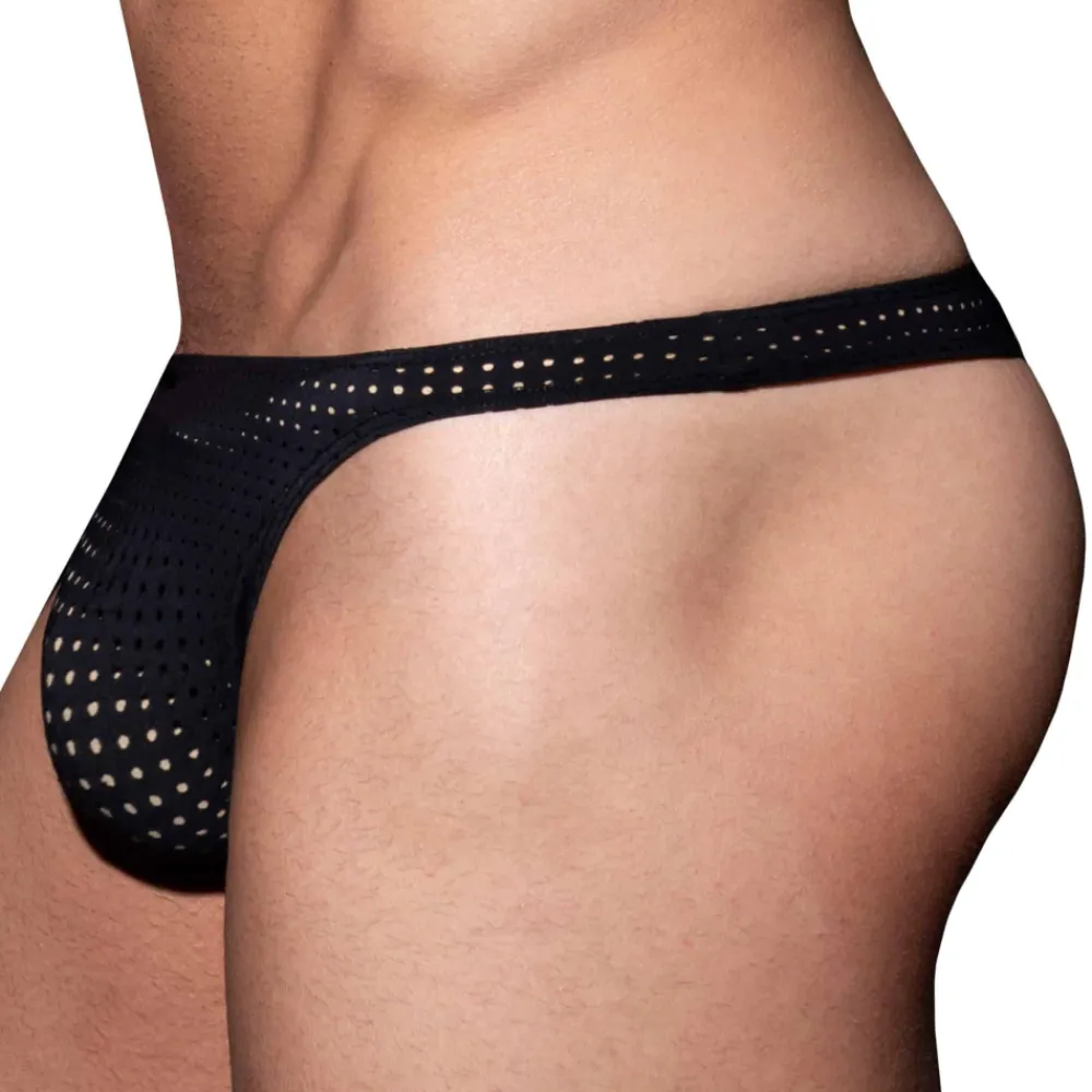 String taille basse en microfibre perforée, extensible, légère et respirante de couleur unie. Poche frontale moulée sans couture pour un confort optimal. Etiquette AD Fetish en silicone à l’arrière.