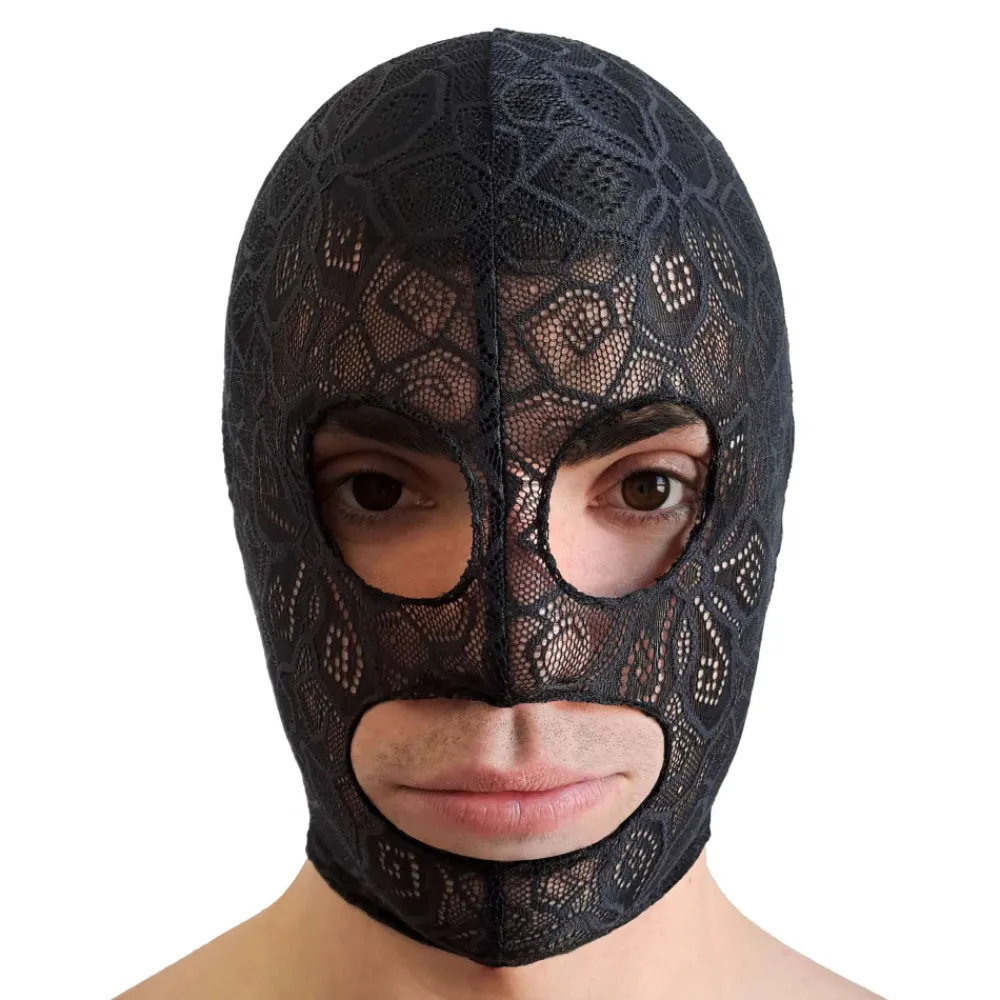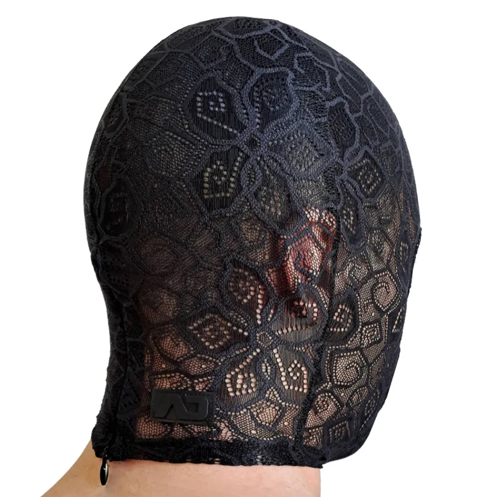 Cagoule en dentelle ornée d’un motif floral. Idéale pour s’adonner aux jeux les plus coquins en toute discrétion. 3 orifices pour les yeux et la bouche. Logo AD en silicone et fermeture Eclair à l’arrière.