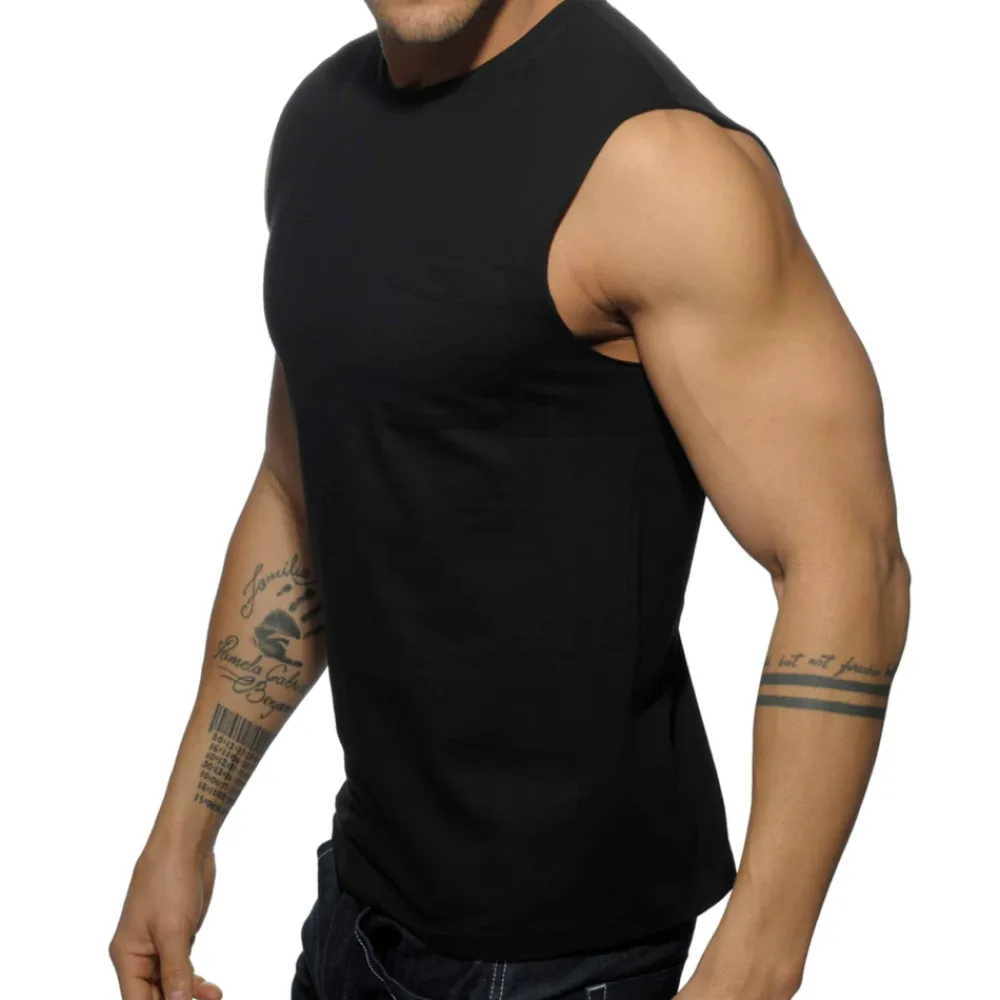 Débardeur ajusté en pur coton doux. Bordure des manches sans couture. Poche sur la poitrine. Logo Addicted dans le dos.