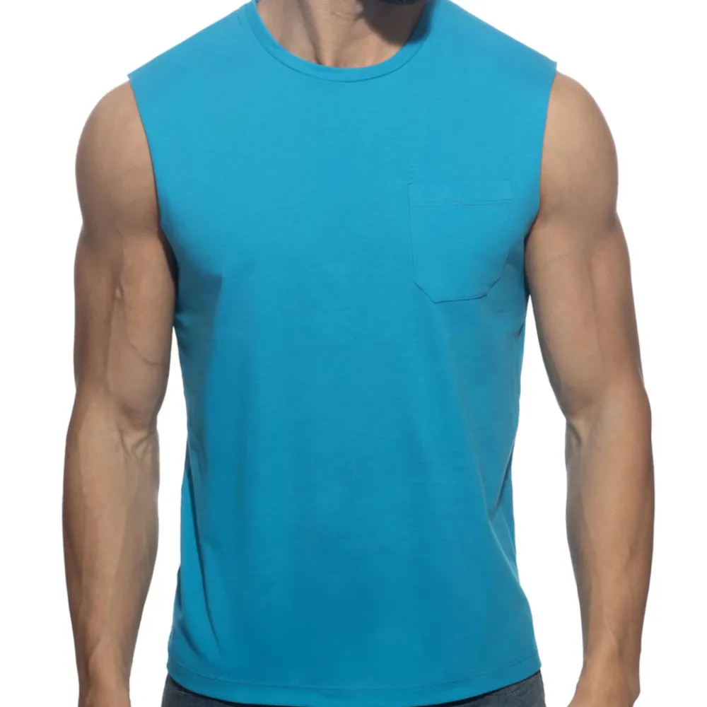 Débardeur ajusté en pur coton doux. Bordure des manches sans couture. Poche sur la poitrine. Logo Addicted dans le dos.