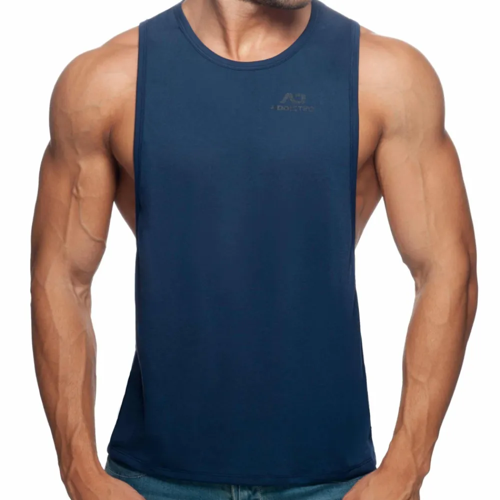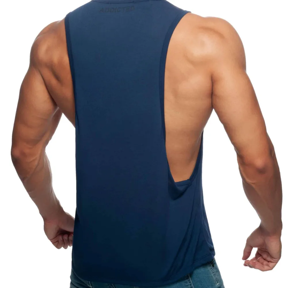 Débardeur en tissu très fin et confortable, idéal pour le sport. Large ouvertures sous les bras. Imprimé Addicted ton sur ton sur la poitrine gauche et dans le dos.