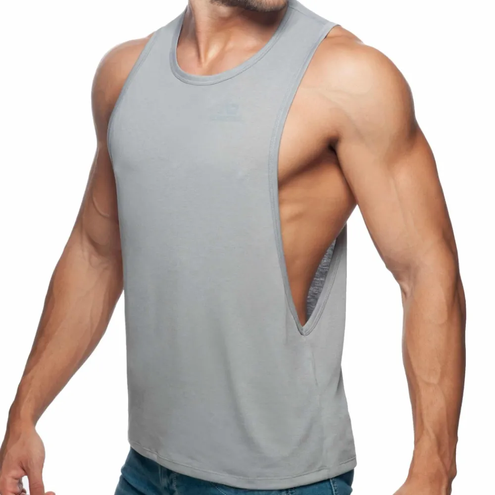 Débardeur en tissu très fin et confortable, idéal pour le sport. Large ouvertures sous les bras. Imprimé Addicted ton sur ton sur la poitrine gauche et dans le dos.