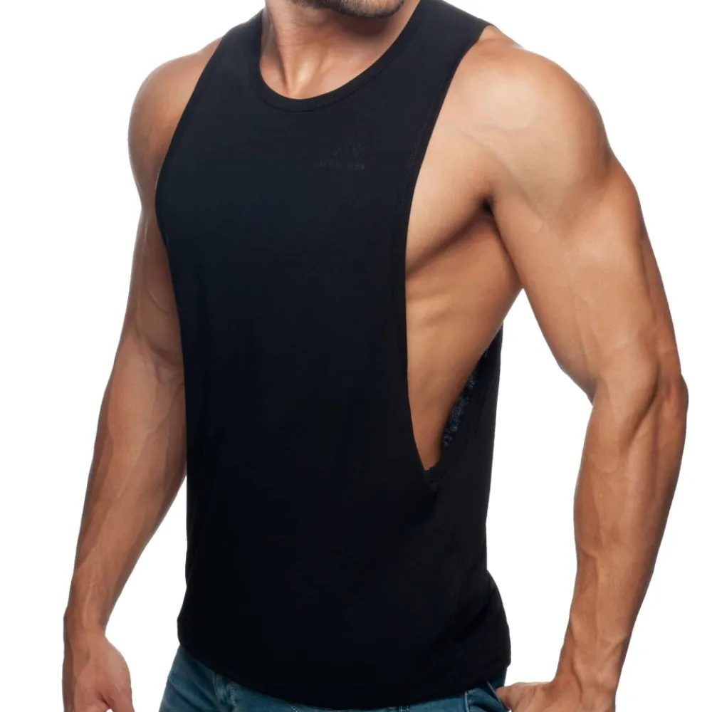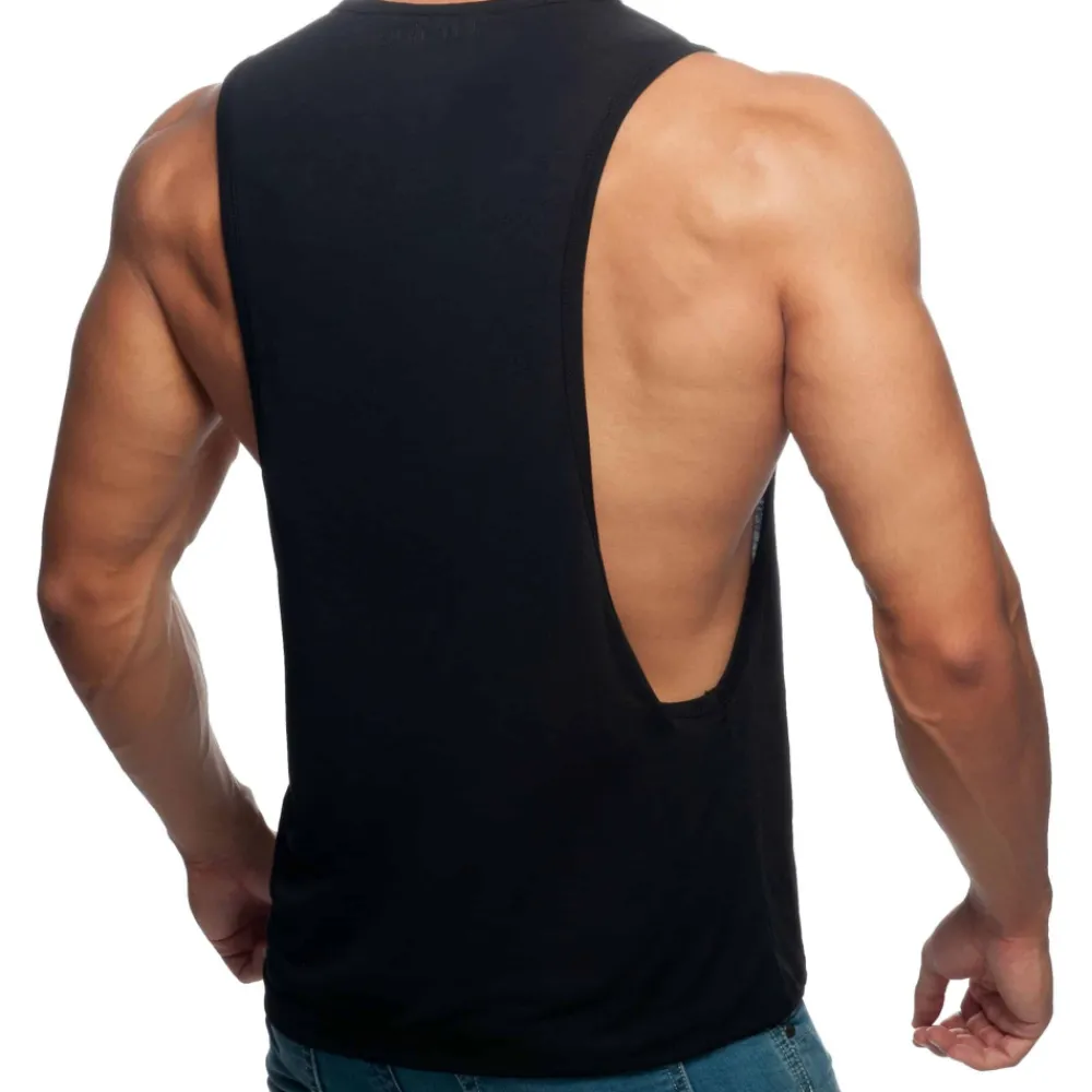 Débardeur en tissu très fin et confortable, idéal pour le sport. Large ouvertures sous les bras. Imprimé Addicted ton sur ton sur la poitrine gauche et dans le dos.