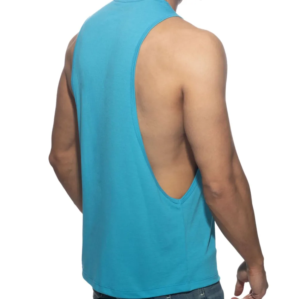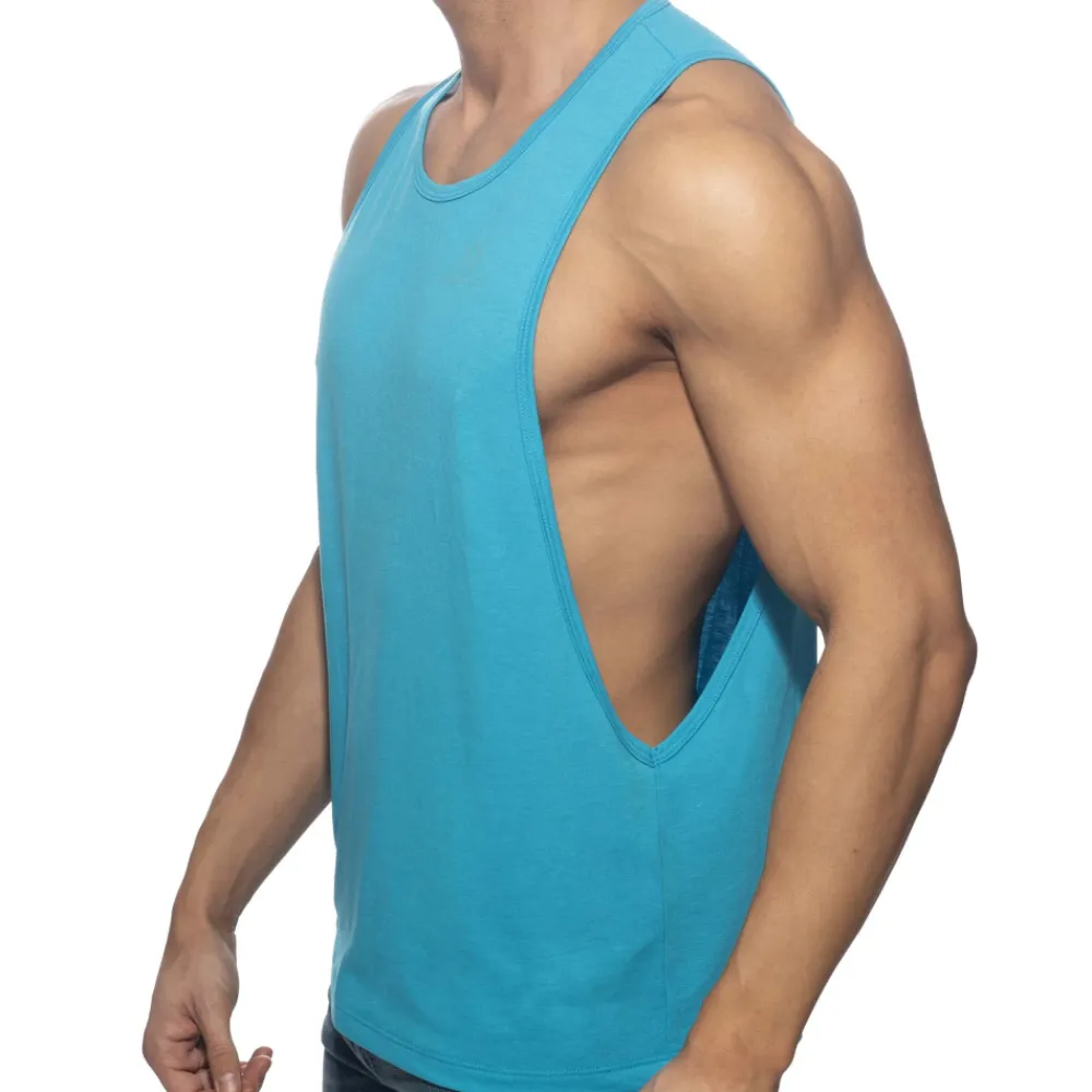 Débardeur en tissu très fin et confortable, idéal pour le sport. Large ouvertures sous les bras. Imprimé Addicted ton sur ton sur la poitrine gauche et dans le dos.