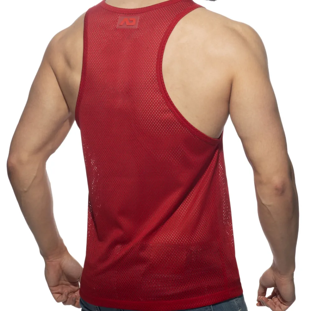 Débardeur en mesh doux et respirant. Poche factice de couleur contrastée sur la poitrine, avec logo AD en silicone. Coupe ajustée, dos nageur et col rond.