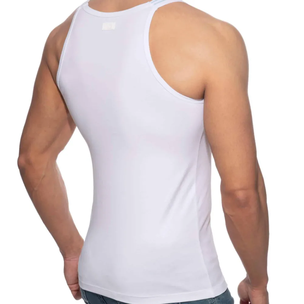 Débardeur très ajusté en coton doux, léger et confortable de couleur unie. Bretelles constituées de bandes élastiques. Logo AD en silicone en haut du dos.