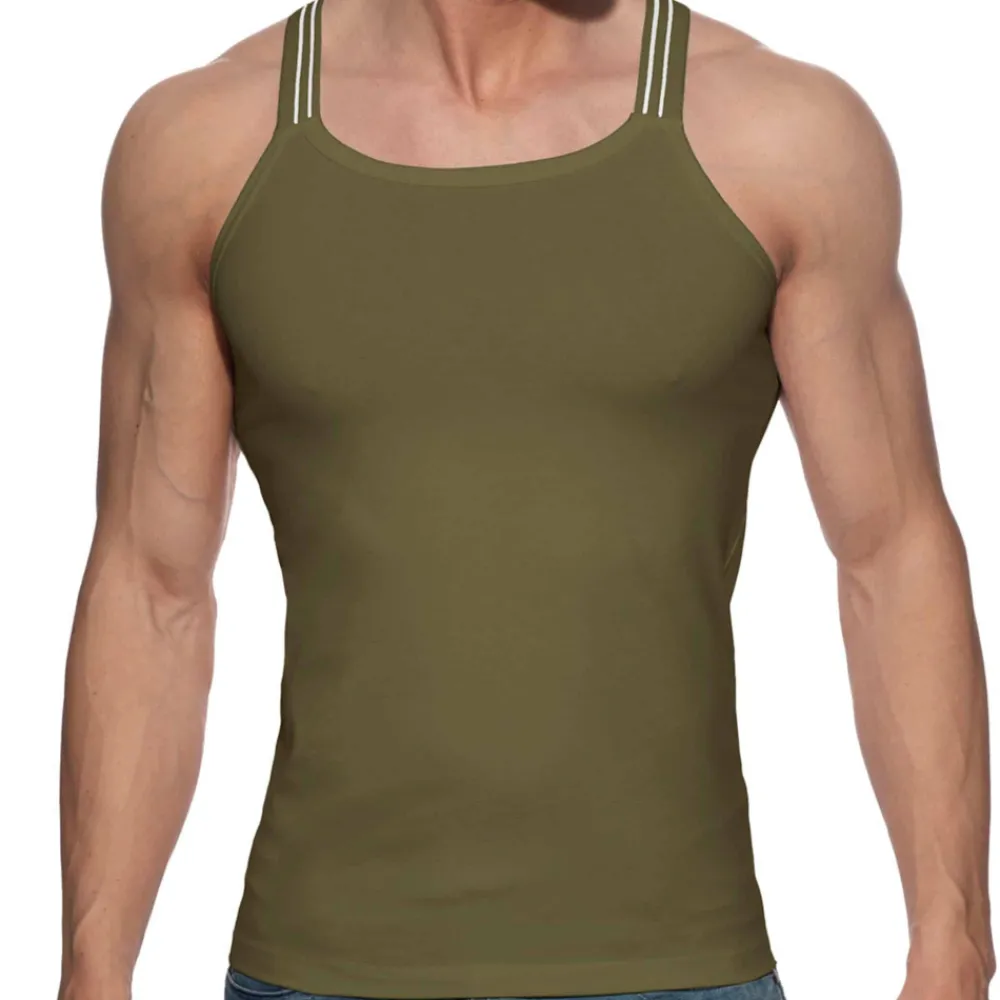 Débardeur très ajusté en coton doux, léger et confortable de couleur unie. Bretelles constituées de bandes élastiques. Logo AD en silicone en haut du dos.