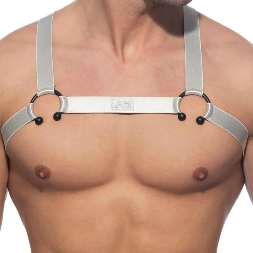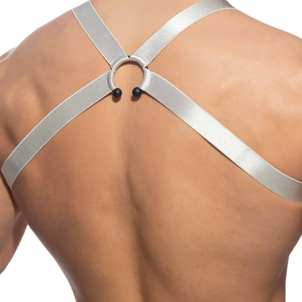 Harnais brillant, dont les bandes élastiques se croisent en formant un X dans le dos. Deux anneaux métalliques devant et un derrière. Logo Addicted en silicone. Taille XS/S pour un tour de poitrine de 84 à 94 cm. M/L : 94 à 104 cm. XL/XXL : 104 à 114 cm.