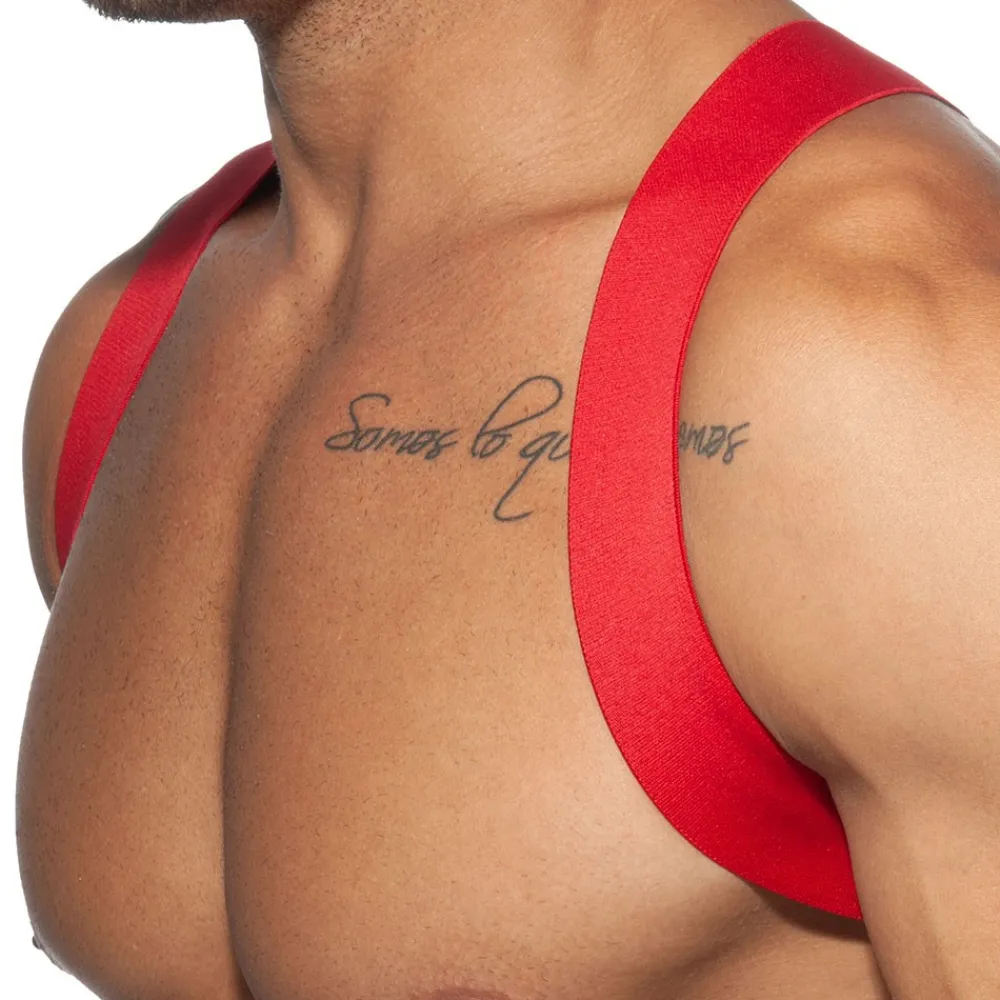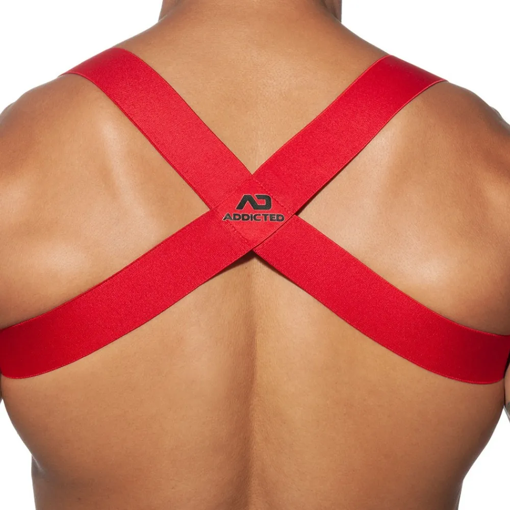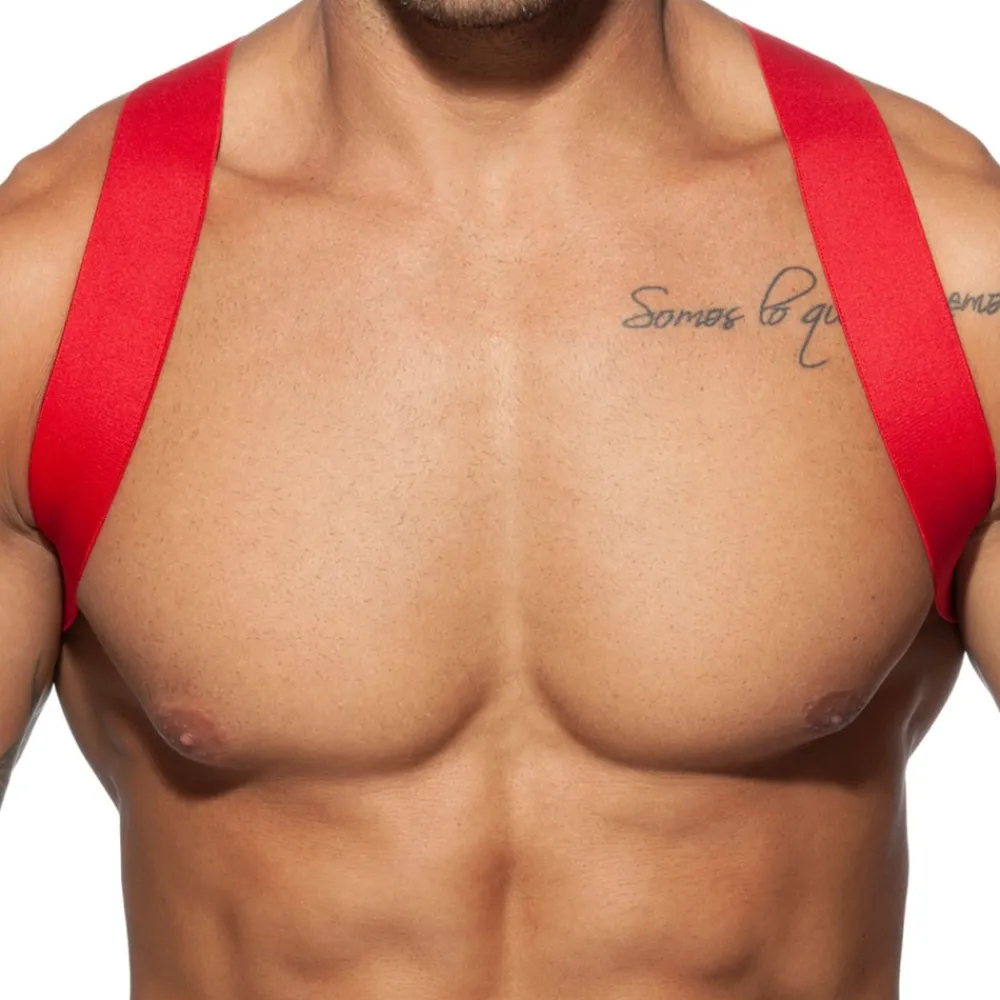 Harnais simple et confortable dont les larges bandes élastiques forment un X en haut du dos.