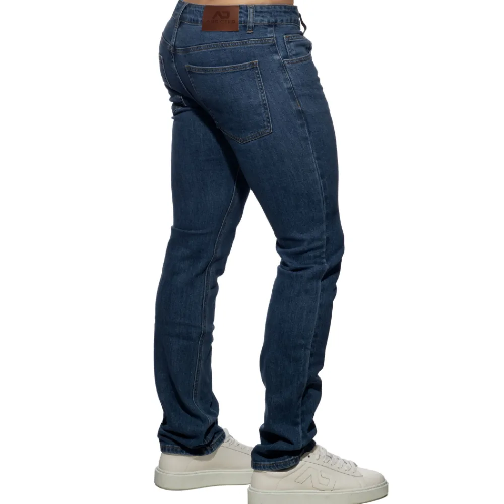 Pantalon en jeans très résistant et confortable en toile denim. Coupe droite et décontractée. 3 poches à l’avant et 2 poches à l’arrière. Braguette à fermeture Eclair et 1 bouton. Passants de ceinture. Etiquette Addicted à l’arrière. Taille US.