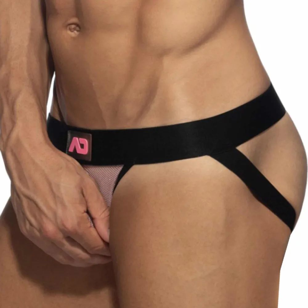 Jockstrap sexy et provocant en résille extensible brillante, dont le maillage large laisse peu de place à l’imagination. Coupe taille basse, minimaliste et très ajustée. Ceinture élastique contrastée avec étiquette AD en silicone.