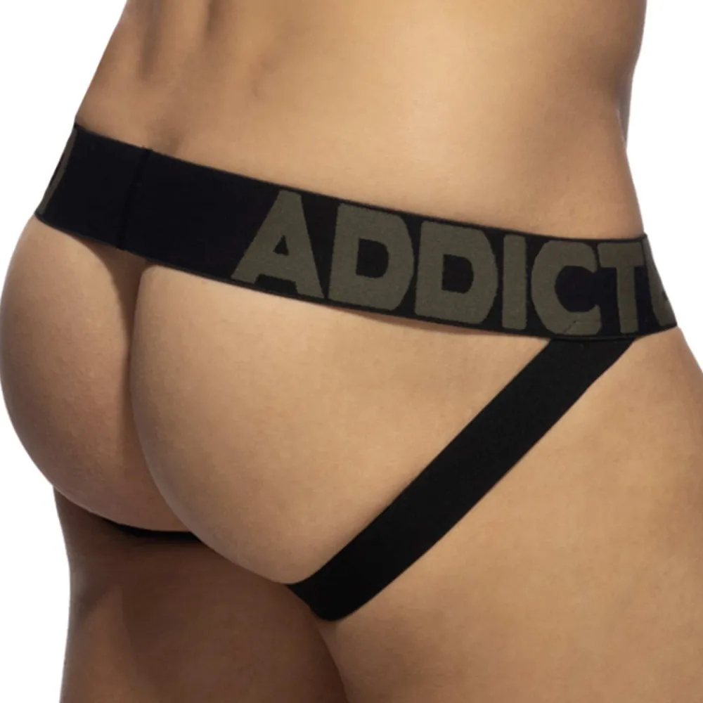 Jockstrap en mélange doux et souple de microfibre et de coton. Coupe taille basse et ajustée. Grande poche frontale push up pour un excellent maintien et une valorisation naturelle de votre masculinité. Bordures de couleur contrastée. Large ceinture élastique signée Addicted.
