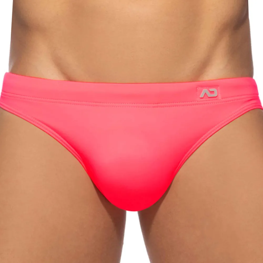 Slip de bain taille basse de couleur fluo. Système Pack Up intégré avec mousse amovible pour mettre en avant votre masculinité. Logo Addicted en silicone. Ceinture élastique avec cordon de serrage intérieur.