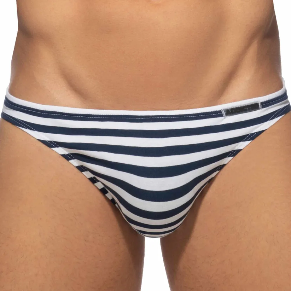 Slip taille basse très sexy en coton doux, léger et confortable. Rayure nautique. Coupe minimaliste très ajustée. Poche frontale moulée sans couture pour un confort optimal. Logo Addicted en silicone sur la fine ceinture élastique.