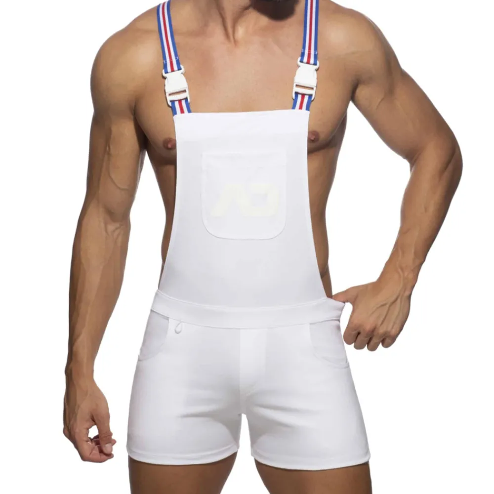 Salopette sexy en mélange doux et fin à base de coton. Poche sur la poitrine avec logo AD imprimé. Deux poches latérales et deux poches arrières. Bretelles élastiques tricolores avec clips fonctionnels.