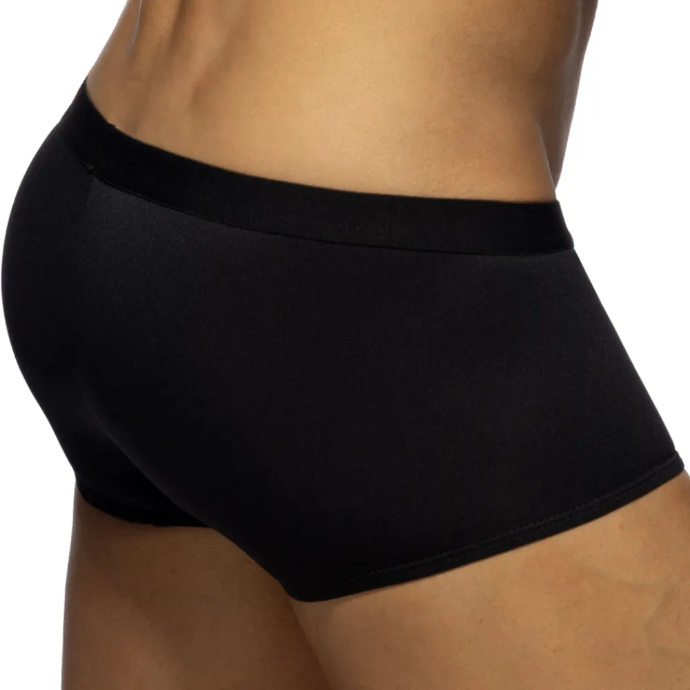 Boxer sexy en microfibre extensible, ultra douce et confortable, de couleur unie. Tissu recyclé à partir de bouteilles en plastique. Coupe super taille basse, minimaliste et très ajustée. Belle poche frontale préformée non doublée. Ceinture élastique fine signée AD.