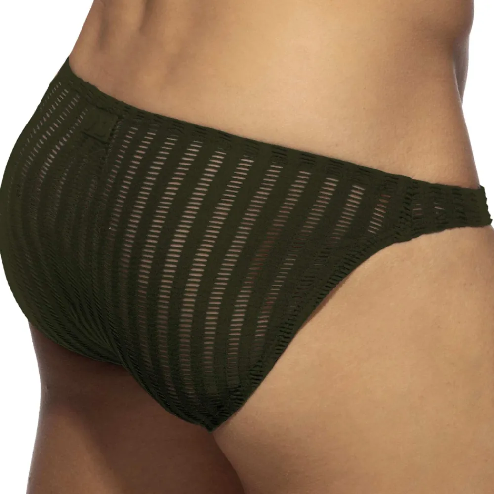 Slip taille basse très sexy et confortable en résille à maillage large. Non doublé pour une grande transparence. Coupe minimaliste et très sexy. Poche frontale moulée sans couture pour un confort optimal. Logo AD en silicone à l’arrière.
