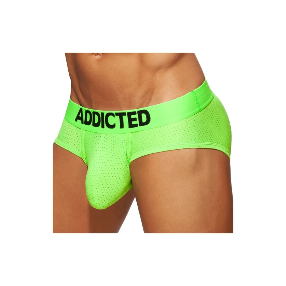 Slip taille basse révolutionnaire en mesh sport, léger et respirant de couleur fluo. Technologie RingUp intégrant un anneau cock ring en silicone (diamètre 5 cm, amovible par bouton pression) pour une érection plus dure et plus longue. Poche frontale push up pour mettre en avant votre masculinité, tout en assurant un maintien très confortable. Ceinture élastique contrastée signée Addicted.