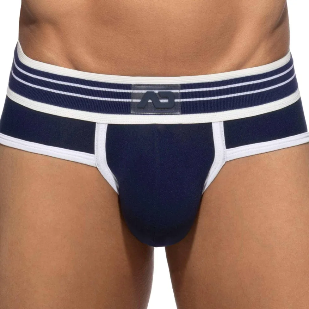 Slip taille basse très ajusté en microfibre extensible fine, légère et légèrement transparente. Poche frontale non doublée de grande capacité. Bordures de couleur contrastée. Ceinture élastique épaisse avec logo AD en silicone.