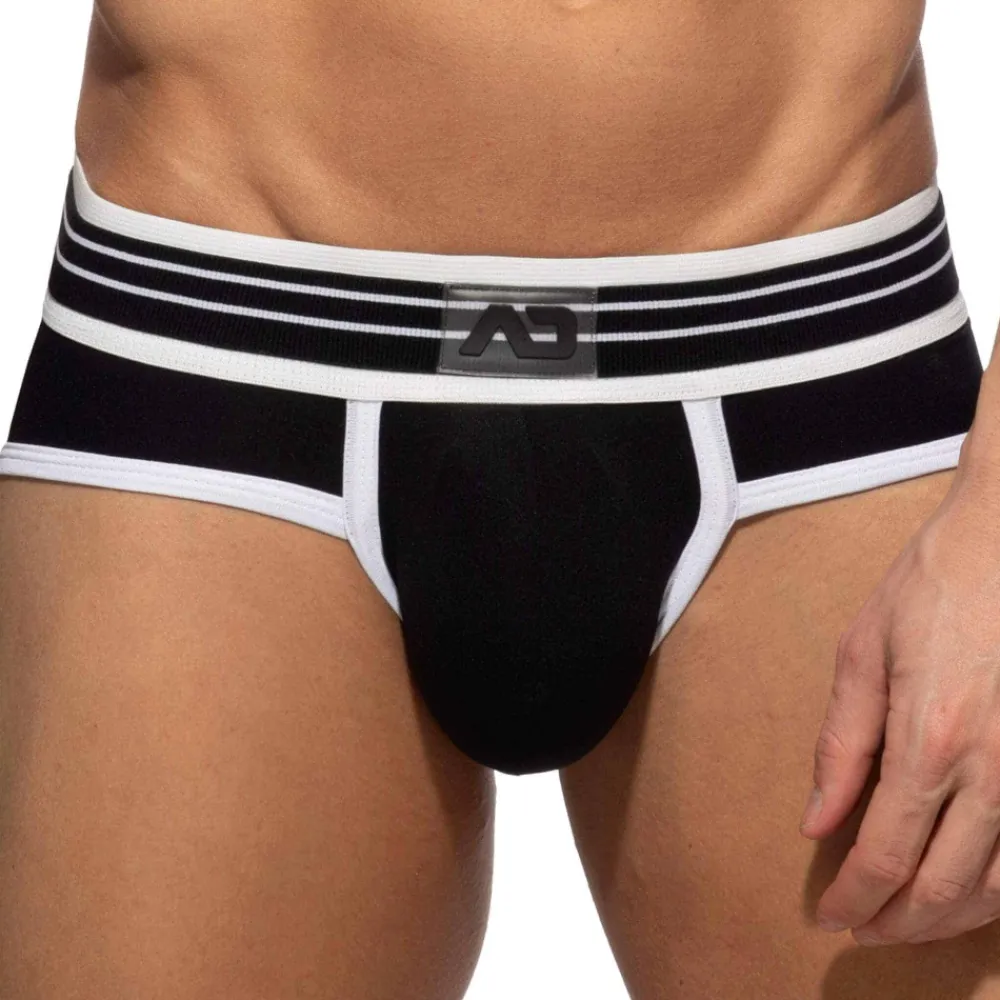 Slip taille basse très ajusté en microfibre extensible fine, légère et légèrement transparente. Poche frontale non doublée de grande capacité. Bordures de couleur contrastée. Ceinture élastique épaisse avec logo AD en silicone.
