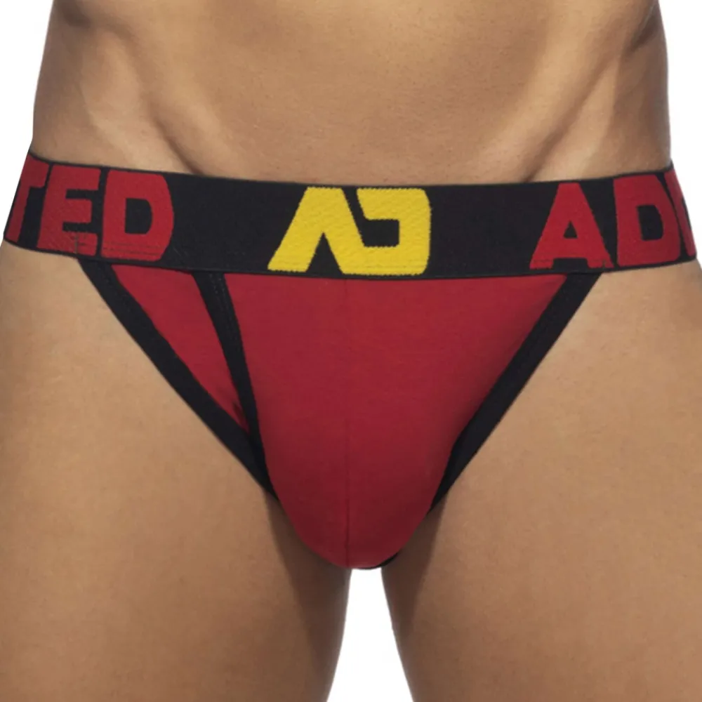 Slip tanga doux et confortable en coton extensible. Poche frontale doublée avec ouverture sur le côté droit pour un accès facile. Détails de couleur contrastée. Large ceinture élastique signée Addicted.