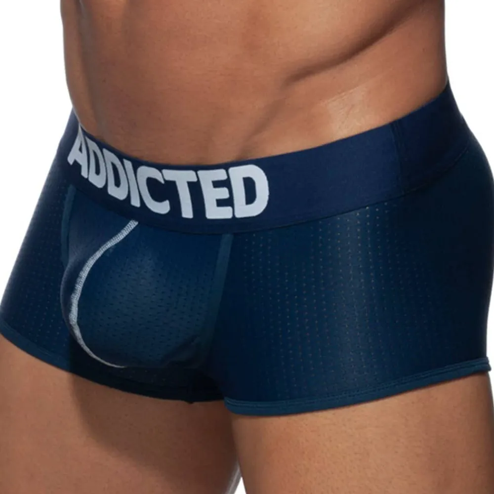 Boxer de couleur unie en mesh respirant, léger et confortable. Poche frontale push up extra-large pour un excellent maintien et une valorisation naturelle de votre masculinité. Ceinture élastique signée Addicted.