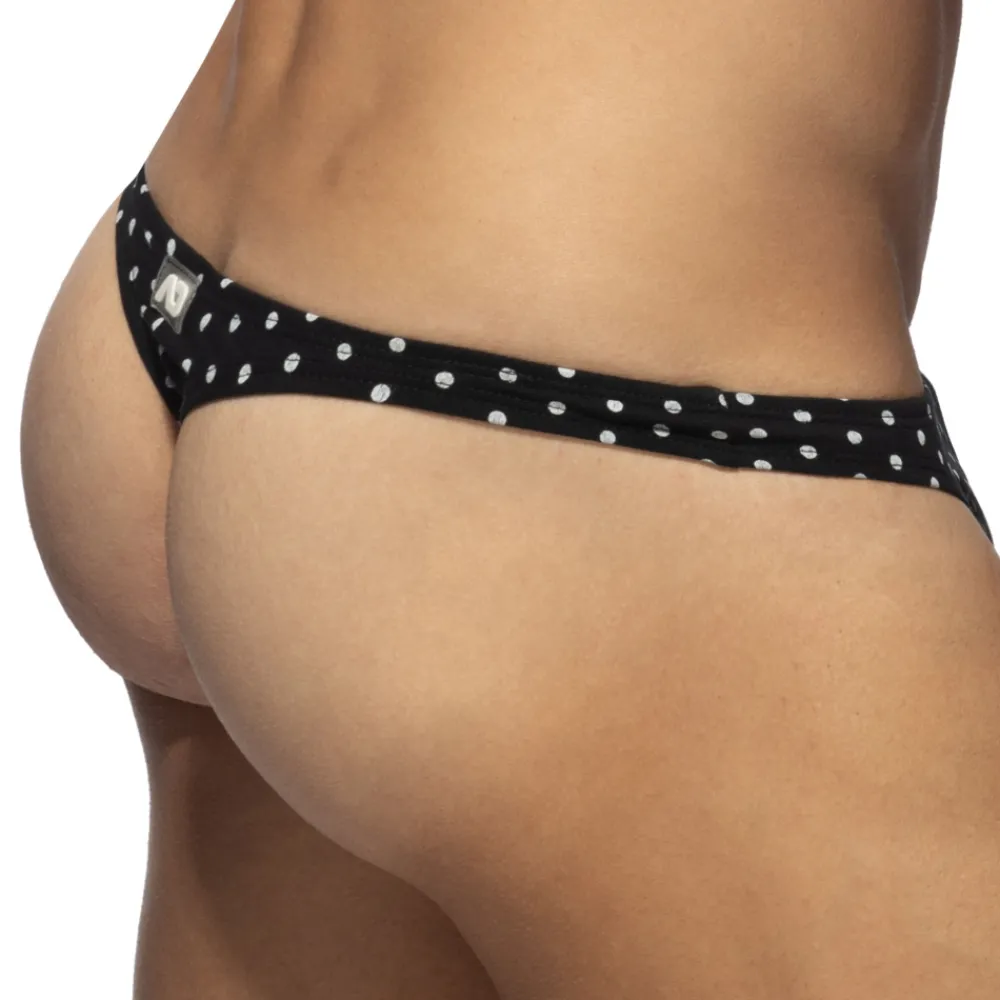 String taille basse en coton extensible ultra doux et confortable. Imprimé à pois très élégant. Coupe minimaliste, très ajustée. Poche frontale moulée sans couture pour un confort optimal. Logo AD en silicone à l’arrière.