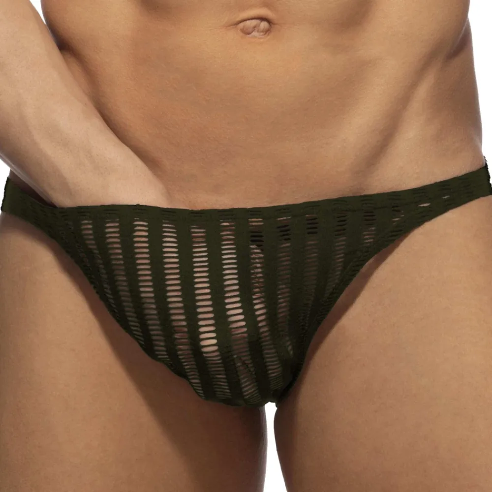 String taille basse très sexy et confortable en résille à maillage large. Non doublé pour une grande transparence. Coupe minimaliste et très sexy. Poche frontale moulée sans couture pour un confort optimal. Logo AD en silicone à l’arrière.