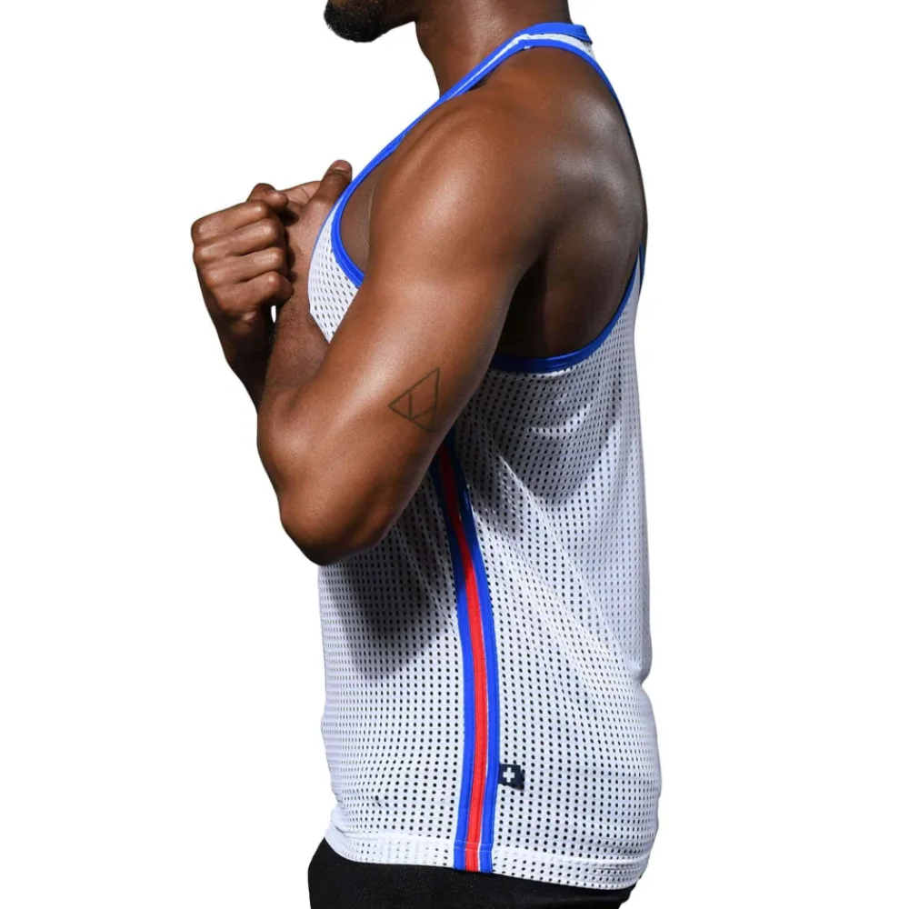 Andrew Christian Débardeurs-Débardeur Col Carré en Mesh Blanc