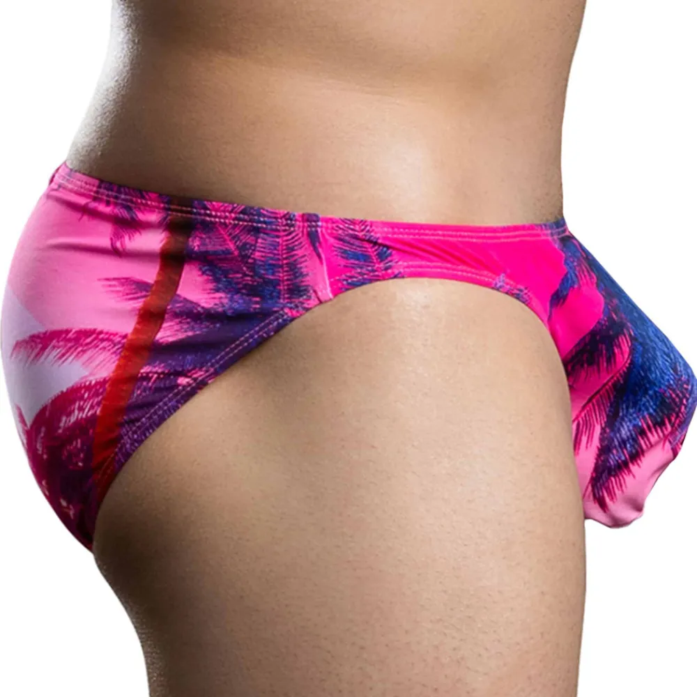 Slip en microfibre stretch douce et confortable. Imprimé couché de soleil de couleur intense. Coupe minimaliste et ajustée. Poche Almost Naked, qui épouse et soutient les organes génitaux, sans les comprimer. Fine ceinture élastique avec étiquette Andrew en silicone à l’arrière. Edition limitée.