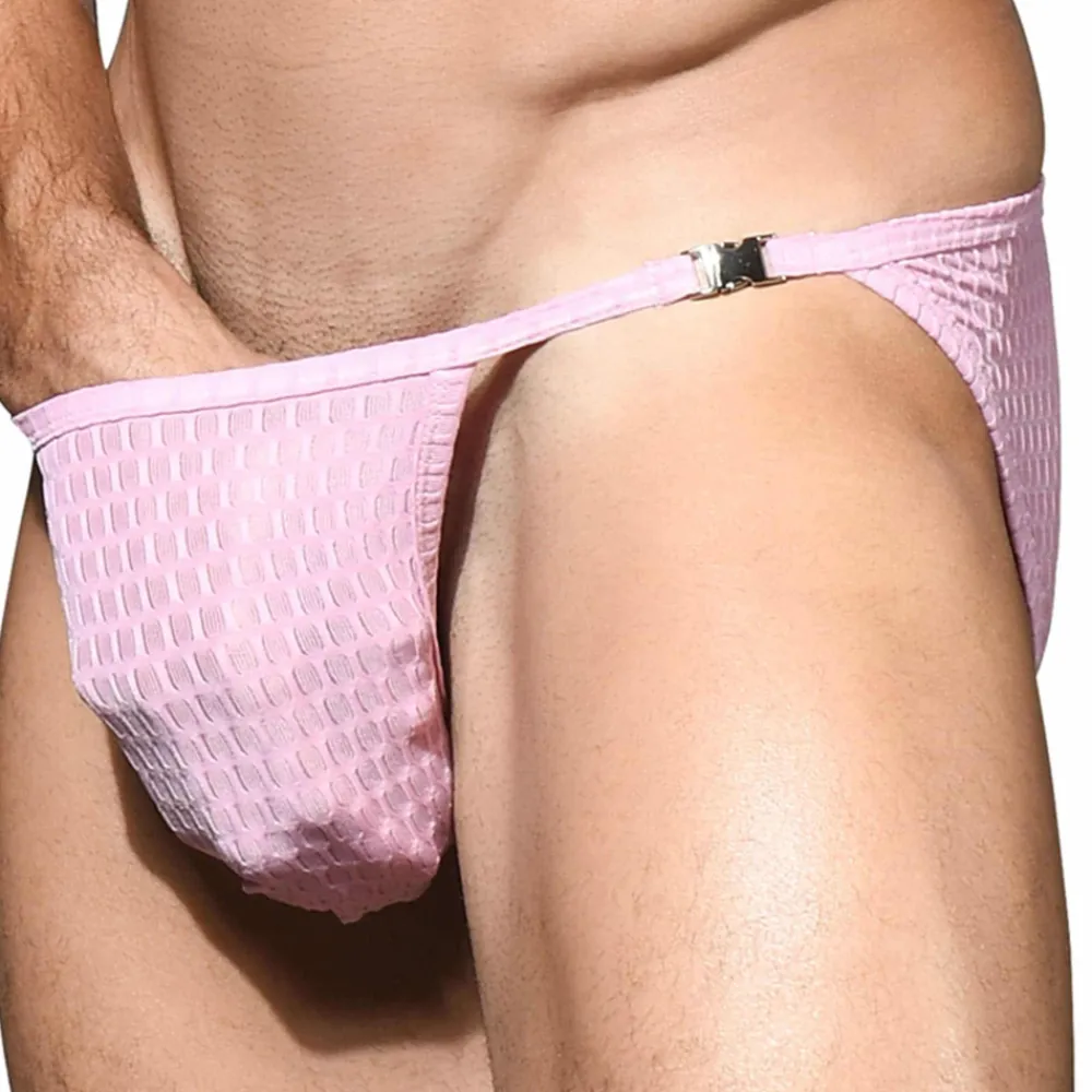 Slip taille basse très sexy en microfibre extensible légèrement transparente. Motif géométrique hypnotisant, sublimé par une boucle métallique fonctionnelle de chaque côté. Poche Almost Naked, qui épouse et soutient les organes génitaux, sans les comprimer. Edition limitée.