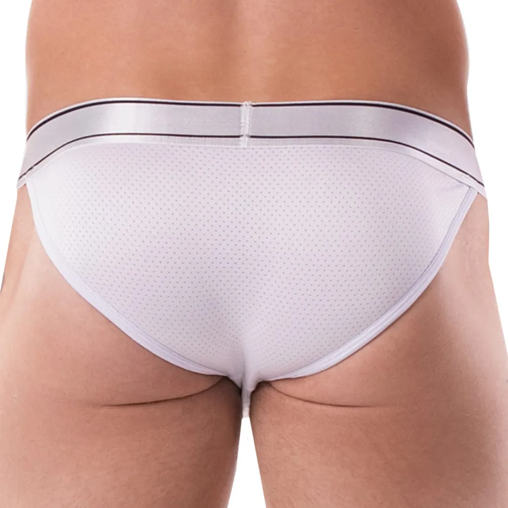 Slip tanga taille basse en mesh sport respirant et ultra confortable. Poche frontale non doublée. Ceinture élastique signée Barcode.