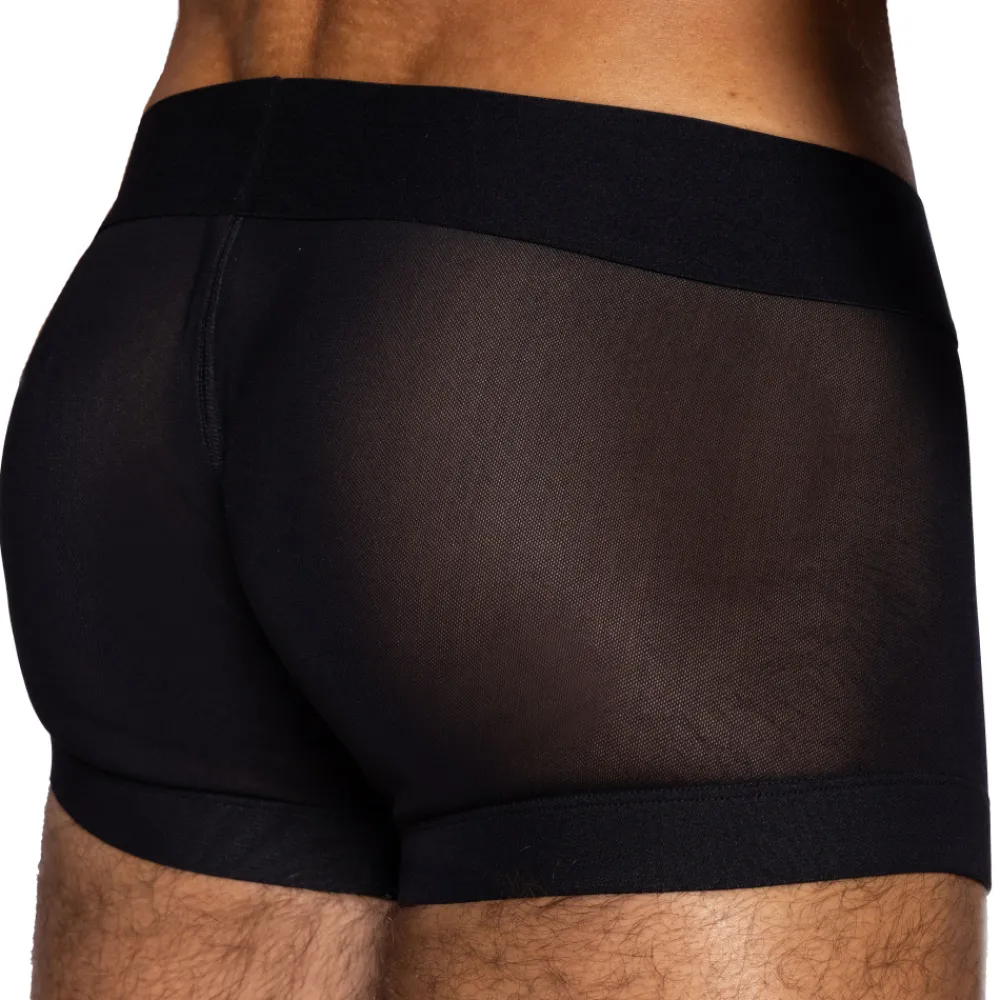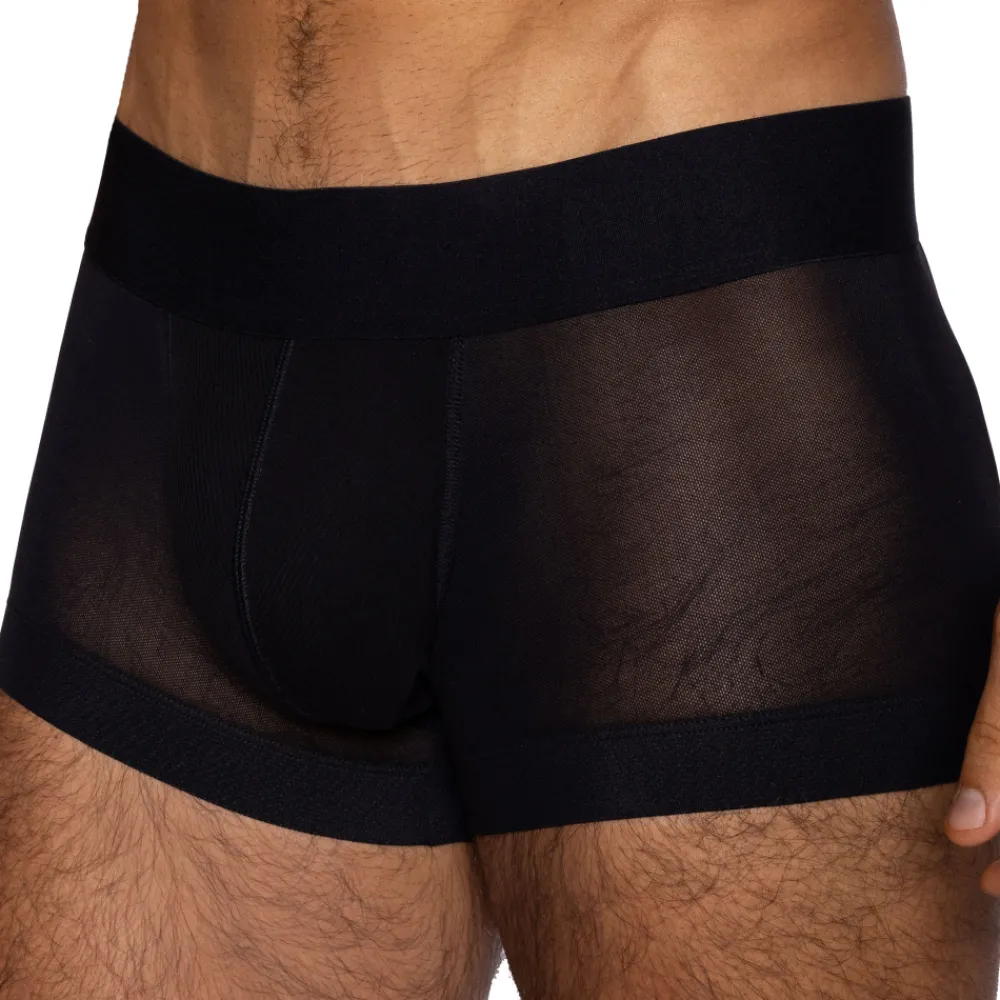 Boxer en résille super extensible, douce et respirante. Poche frontale préformée en microfibre opaque, assurant un support naturel et un grand confort tout au long de la journée. Large ceinture élastique signée BIKE.