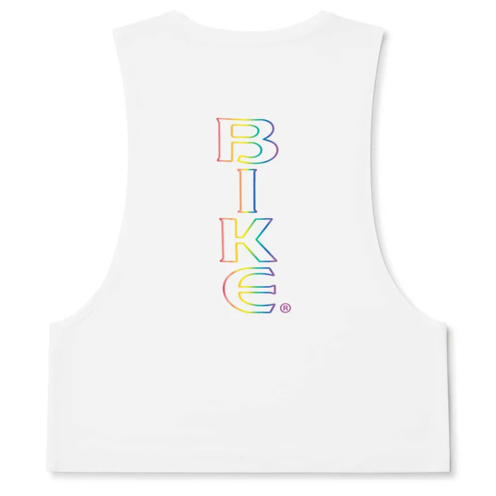 Débardeur sport en modal extensible super doux et confortable. Coupe raccourcie pour dévoiler vos abdos. Grand logo BIKE aux couleurs de l’arc-en-ciel dans le dos.