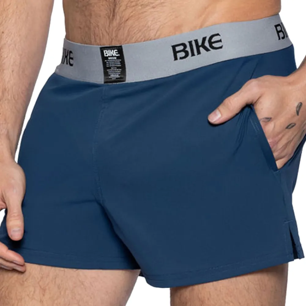 Short sport intégrant un jockstrap pour un confort et un maintien incomparables. En microfibre extensible, douce et légère. 2 poches. Large ceinture élastique de couleur contrastée signée BIKE.