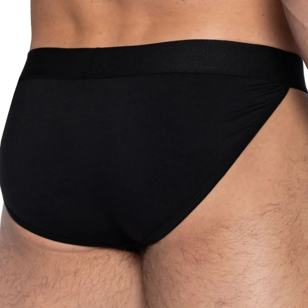 Slip sport et sexy en modal extensible super doux et confortable. Coupe taille basse très ajustée. Poche frontale doublée. Ceinture élastique signée BIKE en lettres dorées.