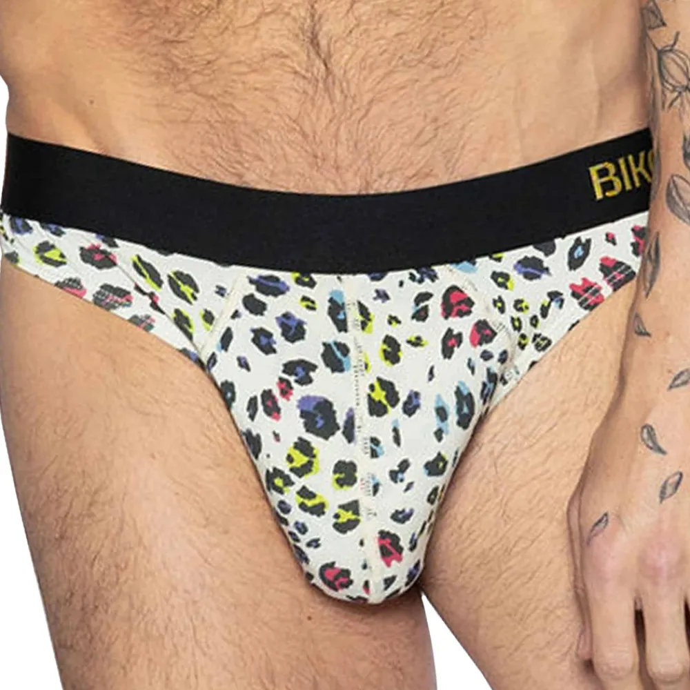 String sport et sexy en modal extensible super doux et confortable. Imprimé léopard. Coupe taille basse très ajustée. Poche frontale doublée. Ceinture élastique signée BIKE en lettres dorées.