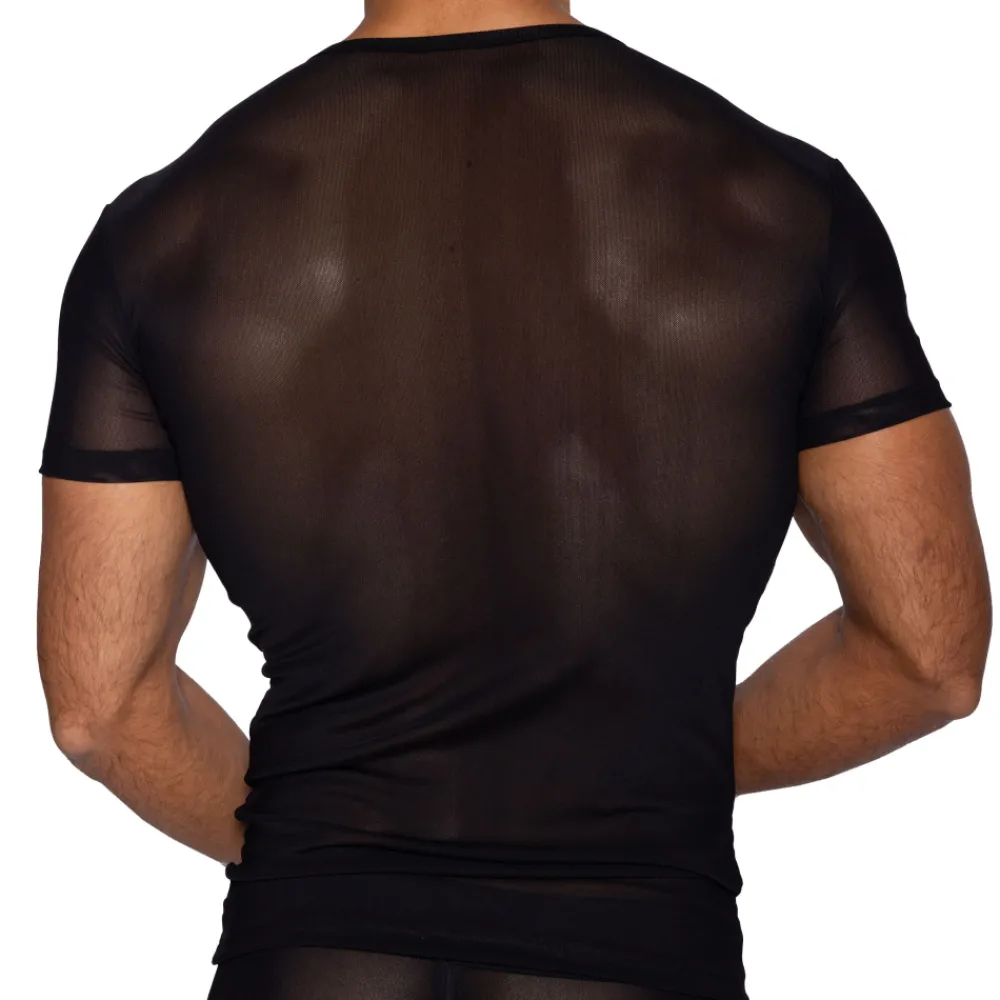 T-shirt sexy en fine résille transparente, légère et respirante. Coupe ajustée. Col rond.