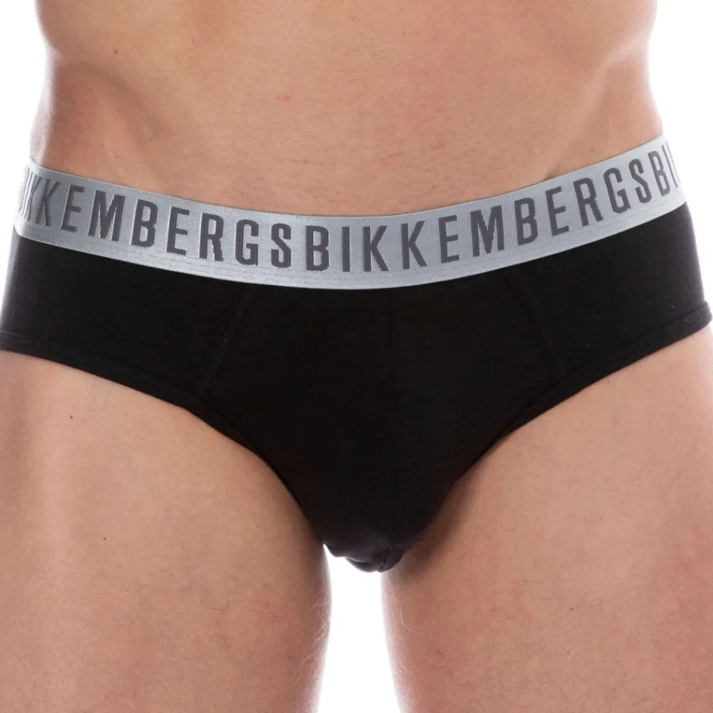 Lot de deux slips en coton extensible, très doux et confortable. Poche frontale doublée. Ceinture élastique logotypée de couleur argentée
