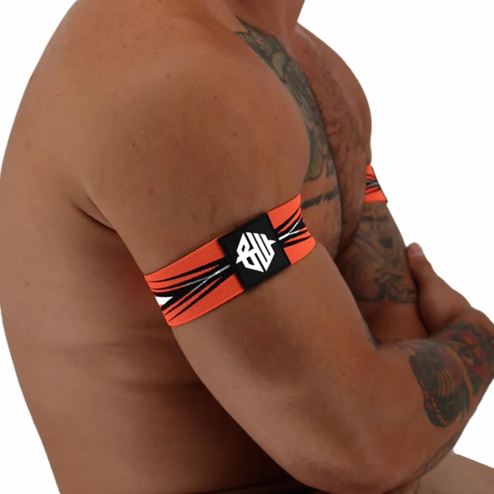 Paire de brassards en bande élastique jacquard. Motifs de couleur contrastée. Accessoire sexy, parfait pour flatter vos biceps. Logo Breedwell en PVC.