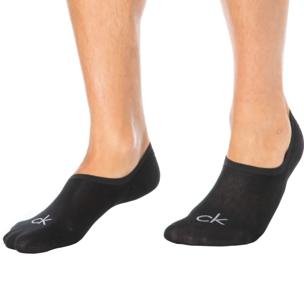 Lot de 3 paires de chaussettes invisibles en coton peigné doux et confortable. Coupe couvrant totalement le dessus du pied. Gros logo CK sur le pied. Talon antidérapant grâce aux fines bandes de silicone. 2 tailles : 39/42 et 43/46.