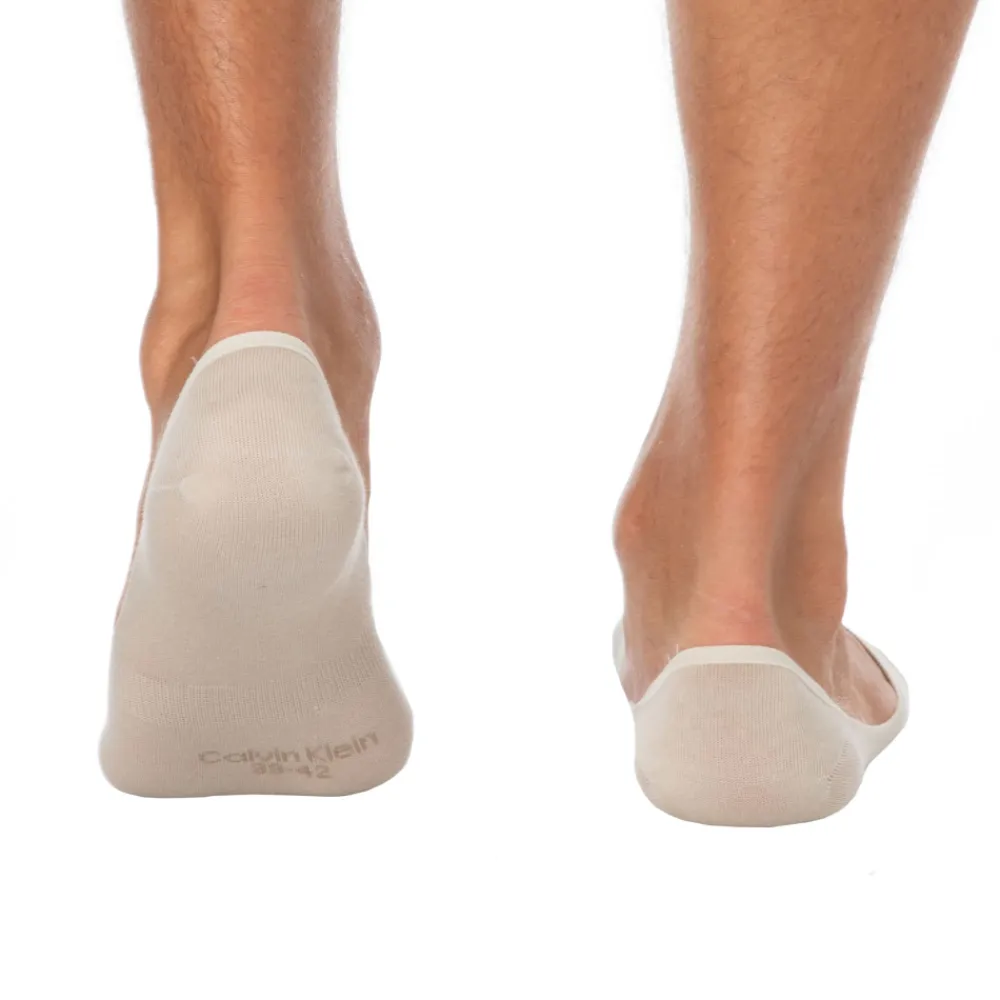 Lot de 3 paires de chaussettes invisibles en coton peigné doux et confortable. Coupe ne couvrant que partiellement le dessus du pied. Logo CK sur le pied. Talon antidérapant grâce aux fines bandes de silicone. 2 tailles : 39/42 et 43/46.