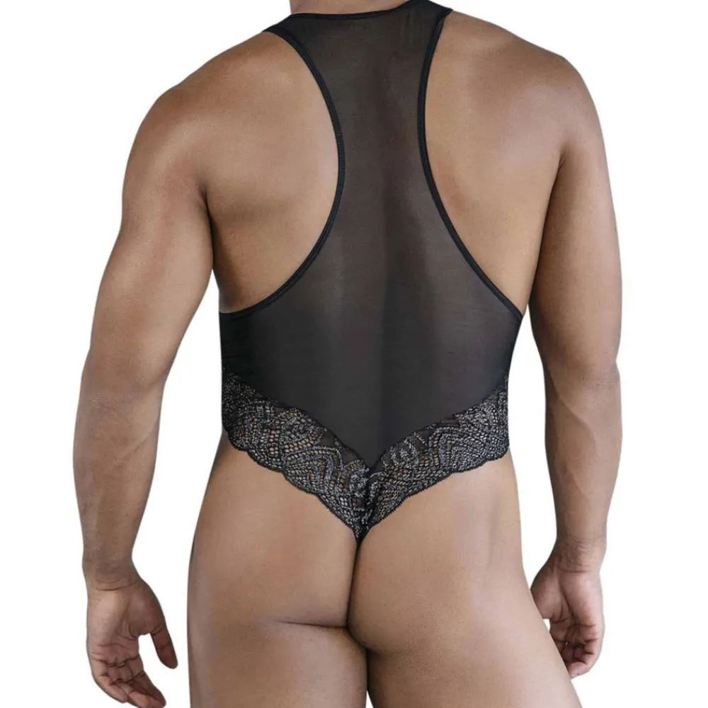 Body string sexy en résille extensible, légère et totalement transparente. Les détails en dentelle apportent une touche de sophistication. Coupe ajustée et échancrée pour mettre en avant votre musculature. Poche frontale opaque non doublée.