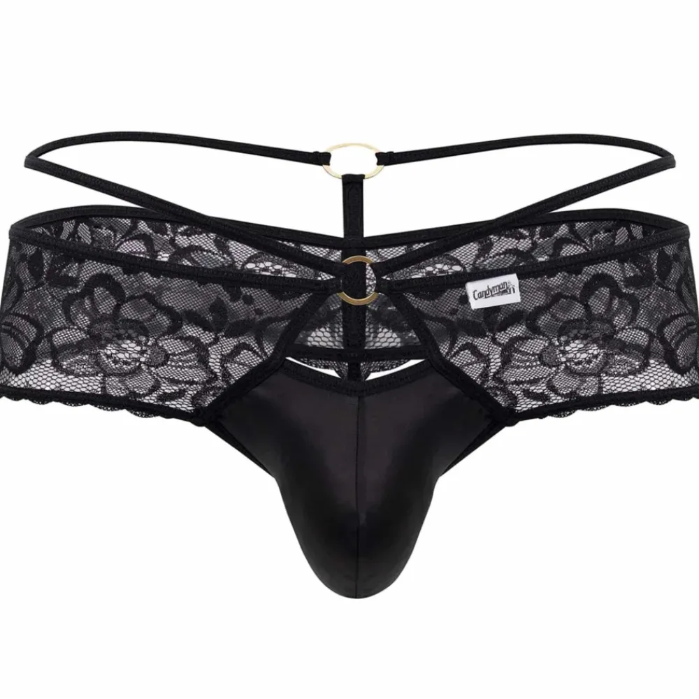 String très sexy en dentelle microfibre stretch douce et soyeuse. Désign original et provocant. Poche frontale préformée non doublée.