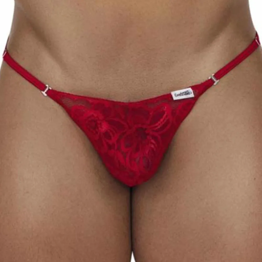 String ficelle très sexy en dentelle florale transparente. Bandes élastiques réglables attachées à la poche frontale avec des crochets fonctionnels pour une ouverture facile.