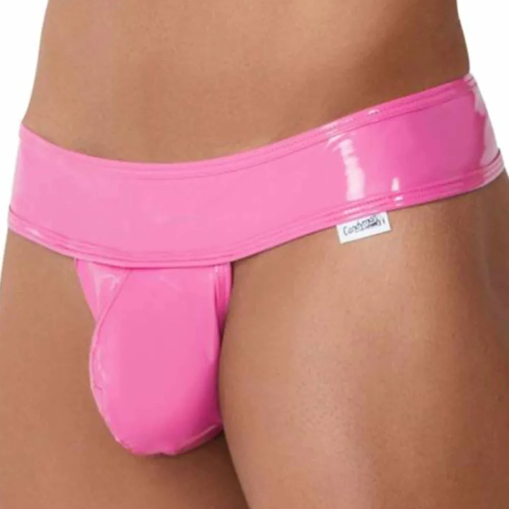 String ultra sexy et provocant en vinyle brillant. Poche frontale préformée, non doublée. Ceinture élastique recouverte extra-large.