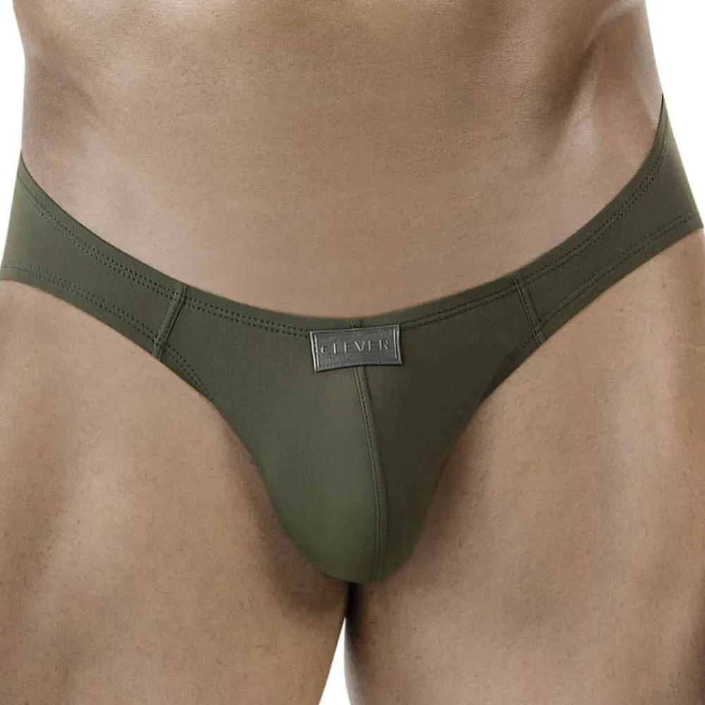 Slip en microfibre extensible, douce et légère, de couleur unie. Coupe minimaliste, super taille basse et très ajustée. Poche frontale ergonomique non doublée. Fine ceinture élastique avec logo Clever en silicone.