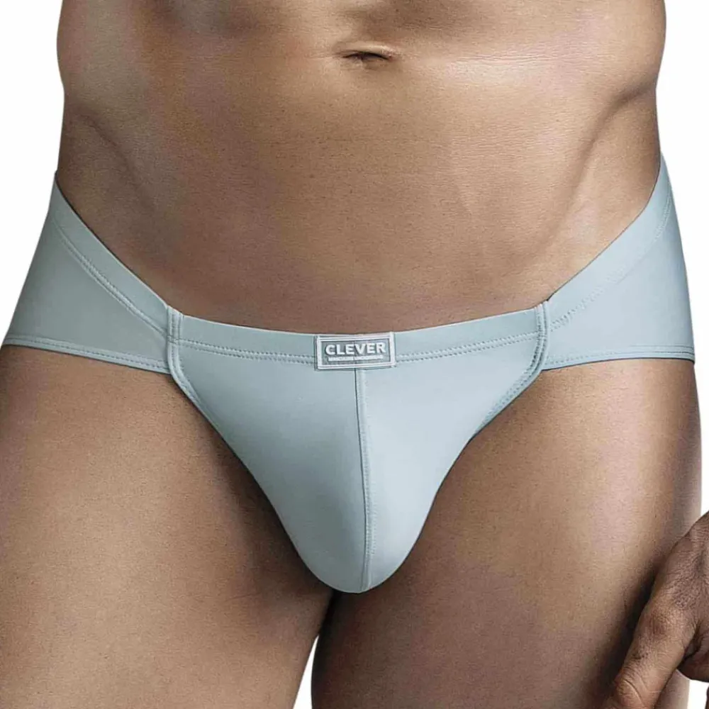 Slip super taille basse en microfibre extensible, douce et légère, de couleur pastel. Poche frontale ergonomique non doublée. Coupe originale très ajustée. Fine ceinture élastique recouverte avec logo Clever en silicone.